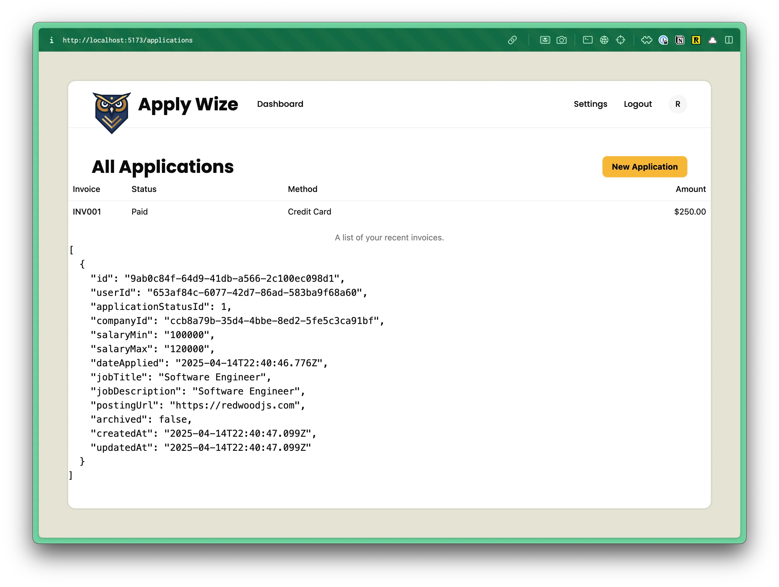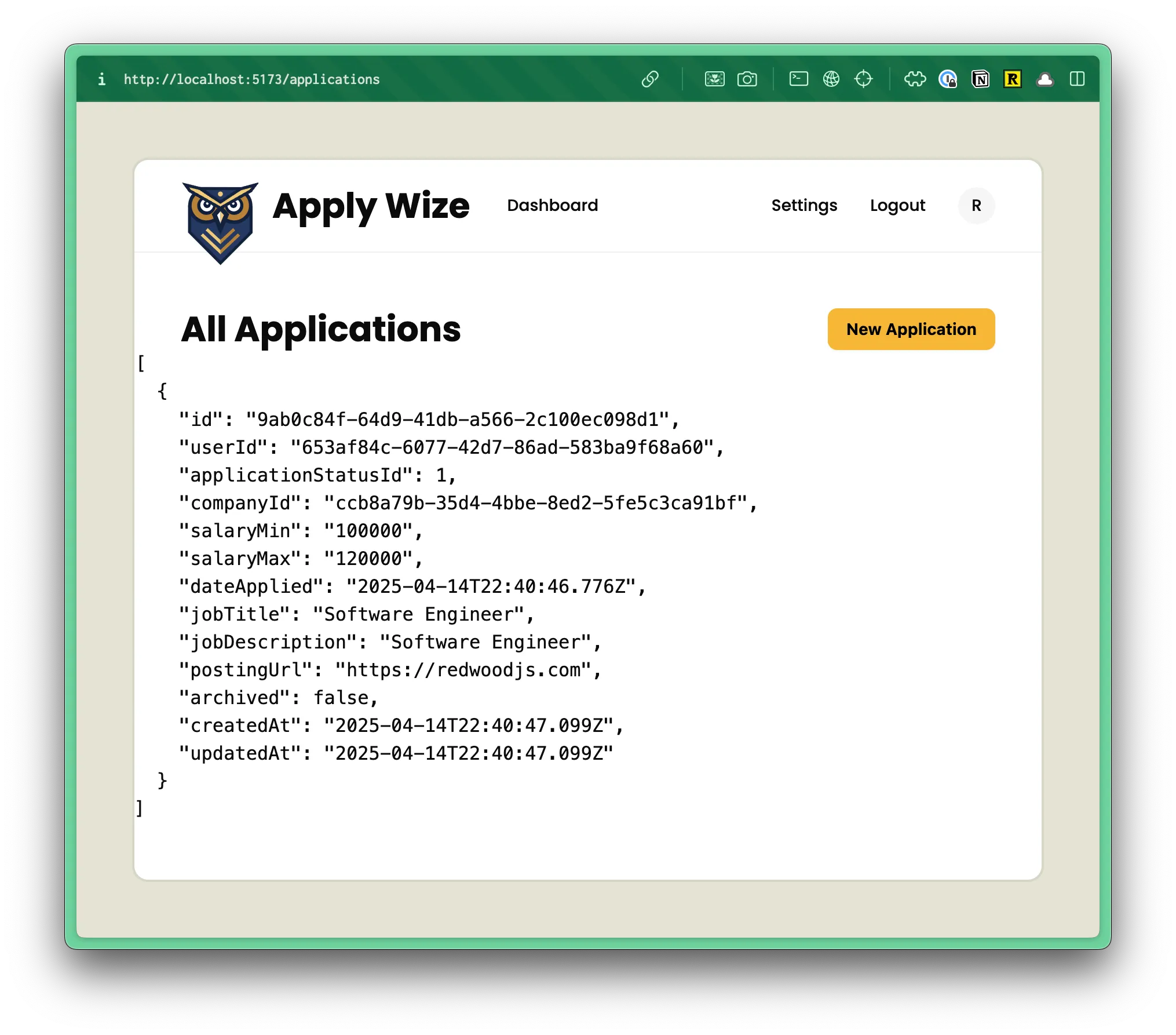 Let’s test this out in the browser. Go to http://localhost:5173/applications and you should see our stubbed out page.