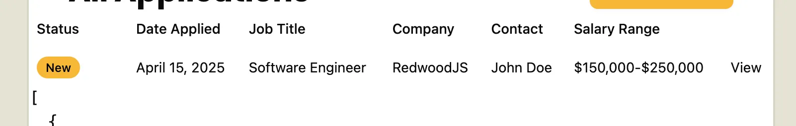Section titled “Displaying the Job Application Data”Once you’ve added some data, let’s go back to our application and display the data on the page.